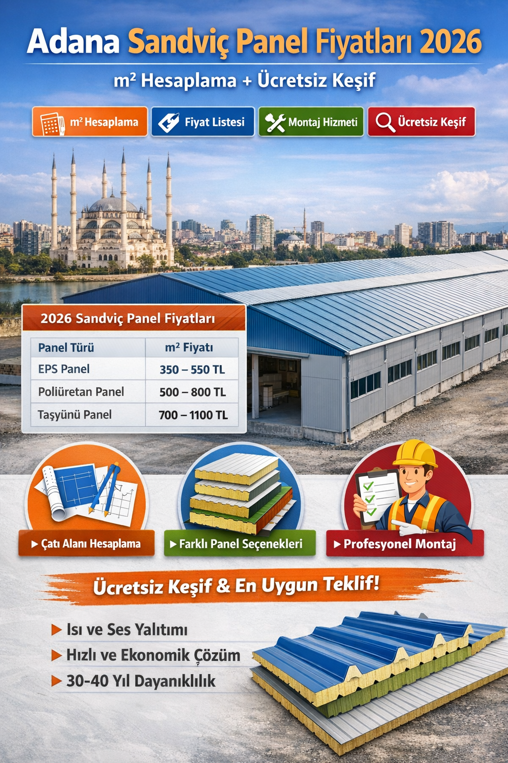 Türkiye’nin önemli sanayi şehirlerinden biri olan Adana’da da son yıllarda sandviç panel kullanımı oldukça artmıştır. Bu nedenle birçok kişi “Adana sandviç panel fiyatları 2026 yılında ne kadar?” sorusunun cevabını merak etmektedir.