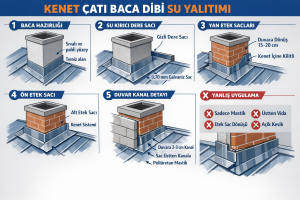 Kenet çatı baca dibi su yalıtımı, çatı sistemlerinde en kritik detaylardan biridir. Kenet çatılar su geçirimsizliğiyle bilinse de, baca…