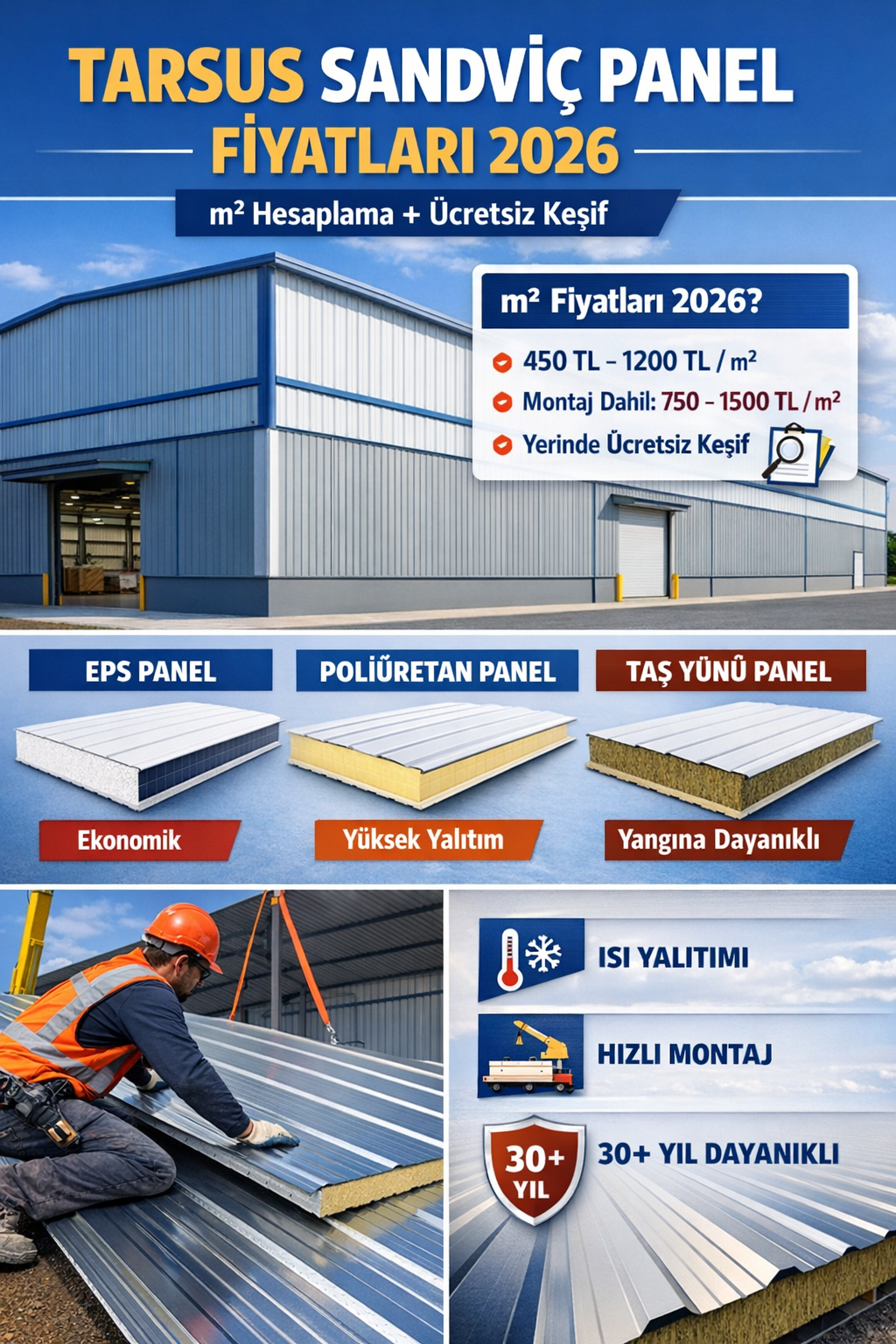 Tarsus Sandviç Panel Fiyatları 2026 | m² Hesaplama + Ücretsiz Keşif